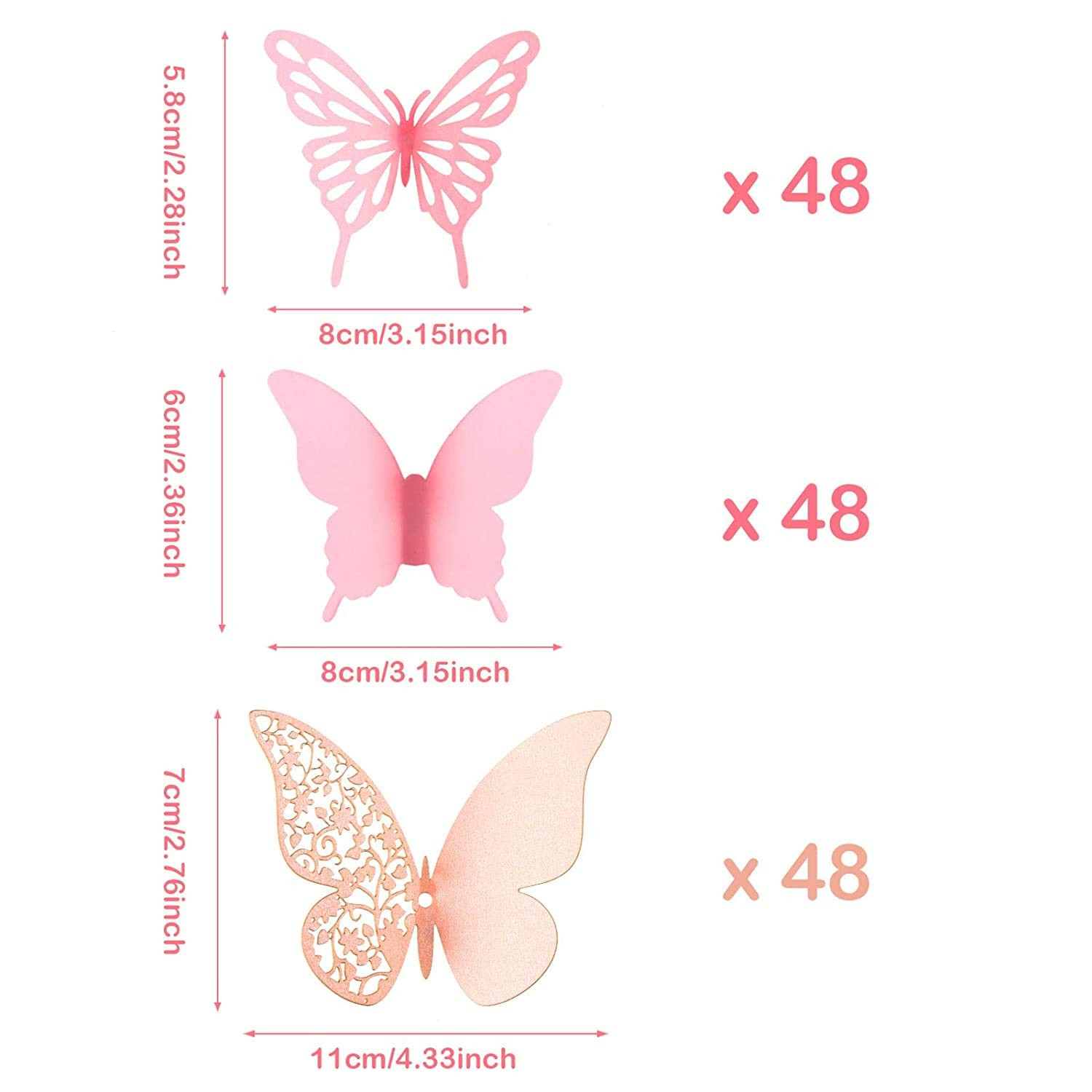 • 3-in-1 Wall Stickers: You will receive 144 pieces of 3D butterfly wall stickers in 3 different styles, available in different shades of pink, enough to spice up your home and create a romantic and dreamy atmosphere