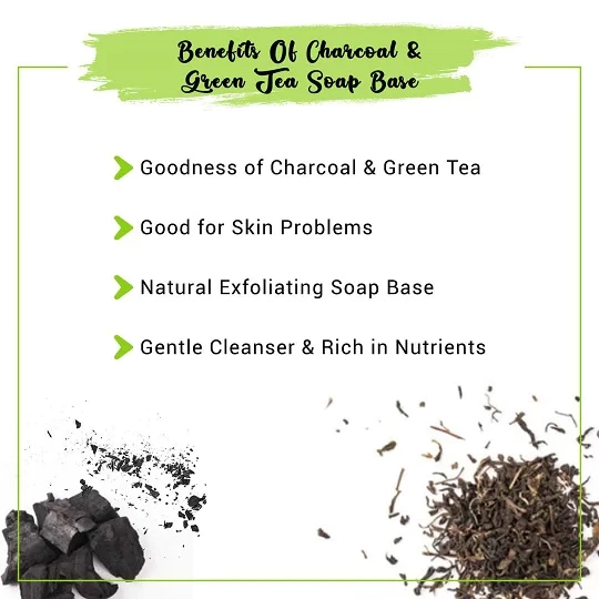 The charcoal and green tea extract present in Organic Charcoal and Green Tea Soap base help to remove dirt and excess oils from the clogged pores. It is also known as an Anti-acne soap base as it effectively helps in fighting acne and diminishing the blemishes from the skin. Charcoal and Green Tea melt and pour soap base helps to beautify the overall appearance of the skin.