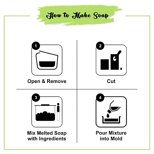 The Green tea content present in this soap base contains Catechin which is a natural Antioxidant that helps in removing tan and pigmentation. It also reduces puffiness under the eyes and lightens the Dark Circles. Activated charcoal content in this soap base acts as a Natural Cleanser giving softness to your skin. Charcoal and Green Tea Melt and Pour Soap Base also efficiently heal and soothe the skin.