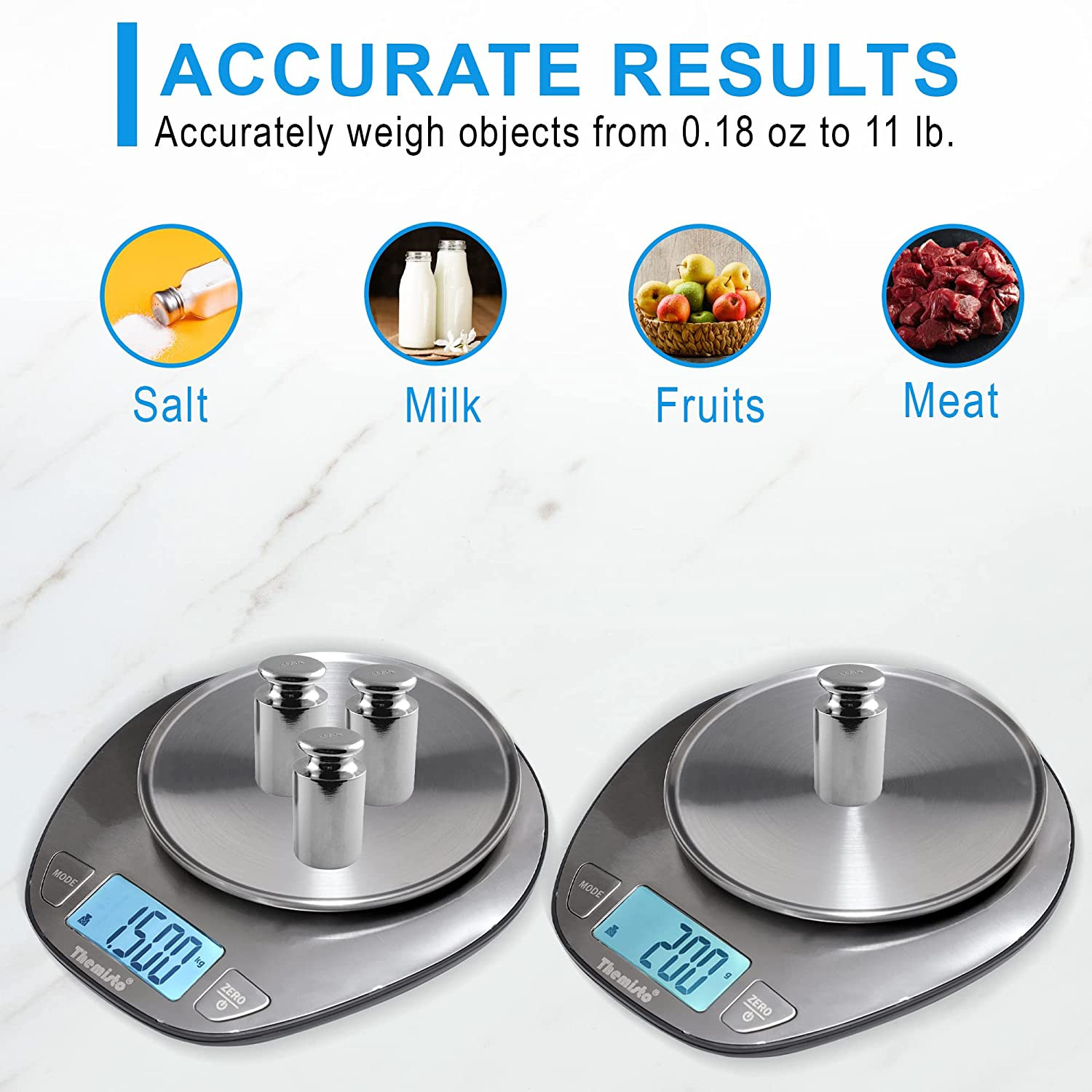 • Liquid Weighing Capacity:Themsito kitchen scale is a multifunctional scale with unique features. Besides weighing solid unit lb: oz and g, you can easily measure your recipe ingredients in fluid ounces (fl'oz), and milliliters by water volume or milk volume.