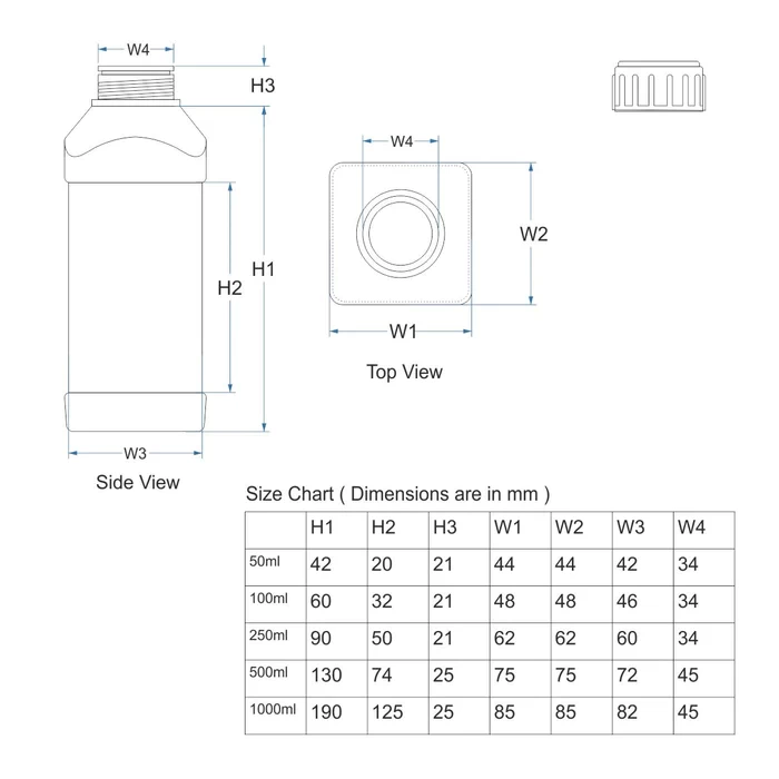 | 1 Ltr | L 85 x W 85 x H 215 | 45 mm |