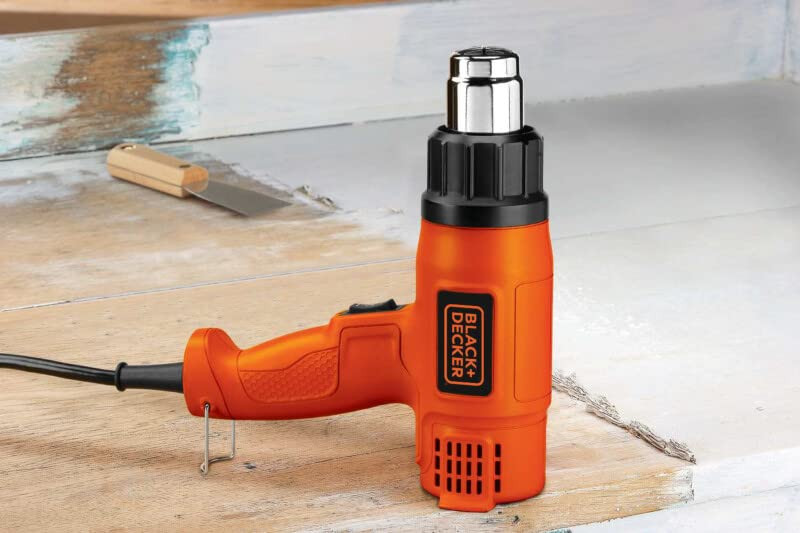• Ergonomically designed heat gun pistol grip handle with lock-on switch provides balance and comfort for prolonged use in home environments
