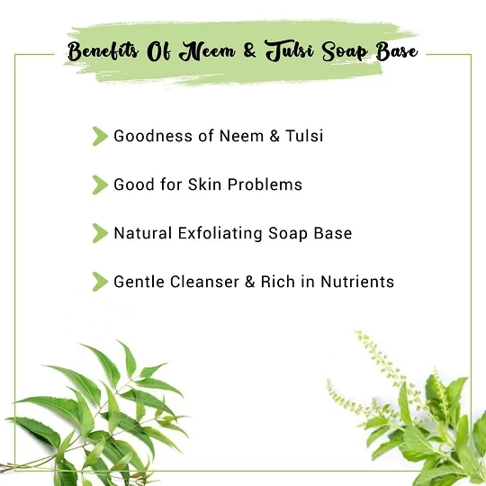 Neem Tulsi Melt and Pour Soap Base is filled with the health benefits of both Neem as well as Tulsi. The Neem present in this soap base holds Anti-aging and Medicinal Properties which help to soothe irritated skin and treat acne. Tulsi on the other hand is a fantastic herb that helps in Tightening and Healing the Skin. This amazing Skin Benefiting duo makes the appearance of skin younger and smoother.