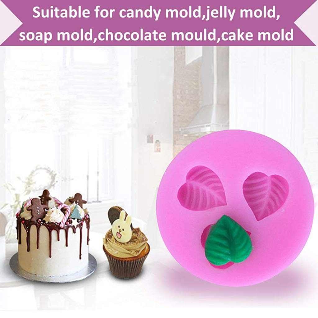 Reusable Fondant Silicon Mould Leaves Silicone Molds Set Mini Maple Leaf Rose Shaped DIY Handmade Baking Tools for Cake Chocolate Candy Ice Jelly Cake Decoration(5pack)